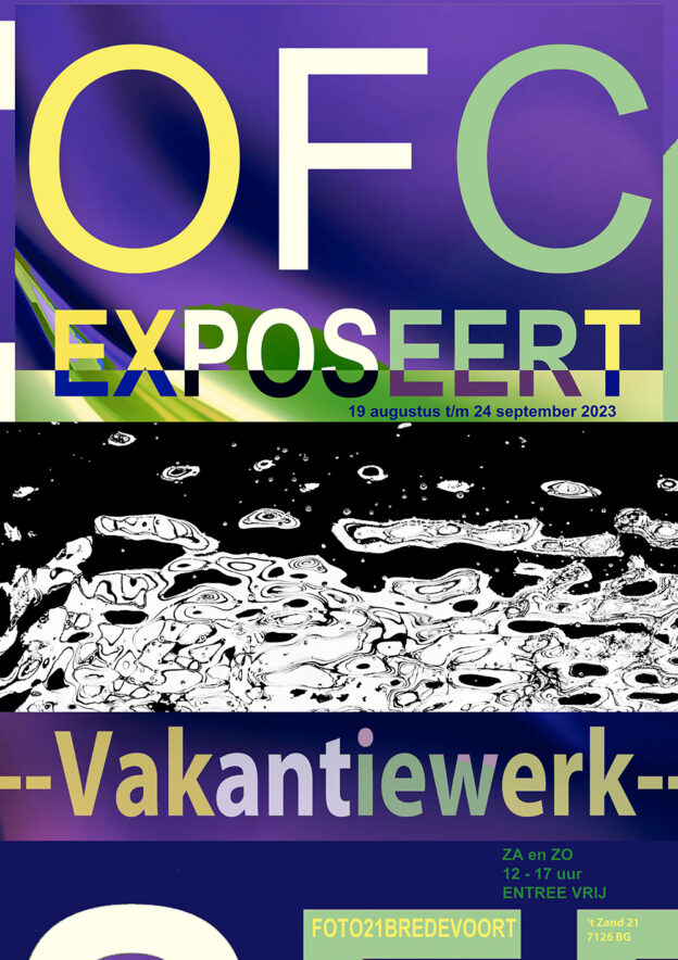 - Vakantiewerk, in galerie Foto21 in Bredevoort. Van 19 augustus tot en met 24 september 2023.